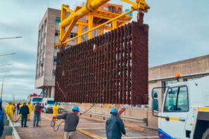 Los trabajos estuvieron a cargo del sector de Coordinación y Logística, que depende del Departamento Técnico. Intervinieron, también, diversas áreas de apoyo: Logística con asistencia de grúa móviles y camiones, Obras con la pala cargadora, Mecánica con asistencia en el izaje y maniobras, Operaciones, Seguridad Industrial y Servicio Generales con la limpieza y asistencia de buzos.